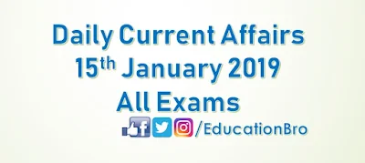 Daily Current Affairs 15th January 2019 For All Government Examinations