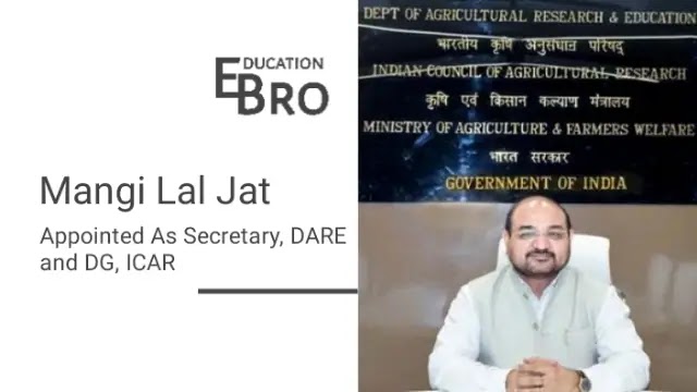 Eminent agricultural scientist Dr. Mangi Lal Jat has been appointed as the new Secretary, Department of Agricultural Research and Education (DARE) and Director General (DG) of the Indian Council of Agricultural Research (ICAR) for a period of three years. Mangi Lal Jat has held key roles with several prominent national and international organizations, including the United Nations Food and Agriculture Organization (FAO) and the International Society of Precision Agriculture (ISPA).